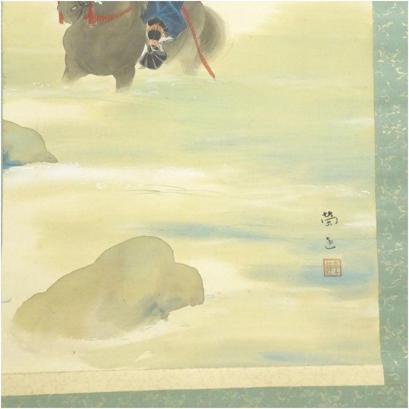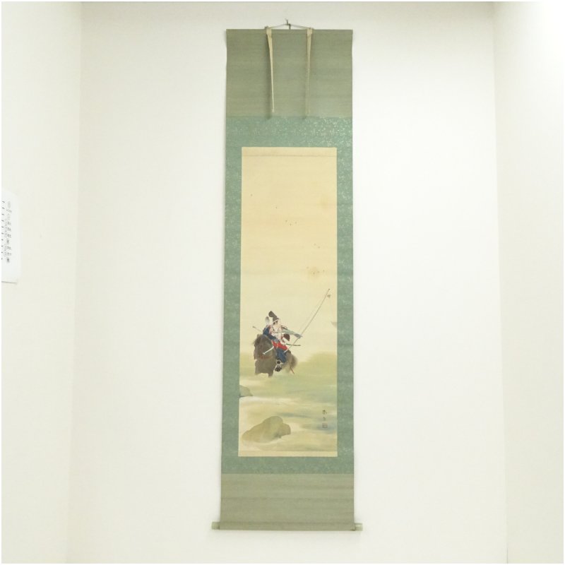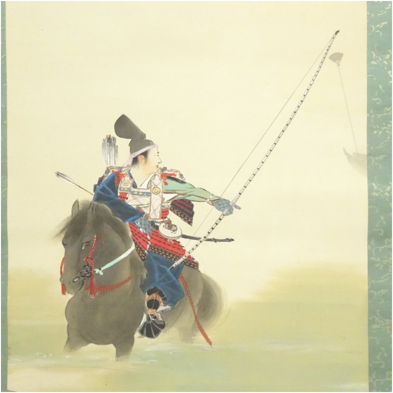 小山栄達筆 那須与一図 肉筆絹本掛軸(保護箱) [14-251113b-029a]