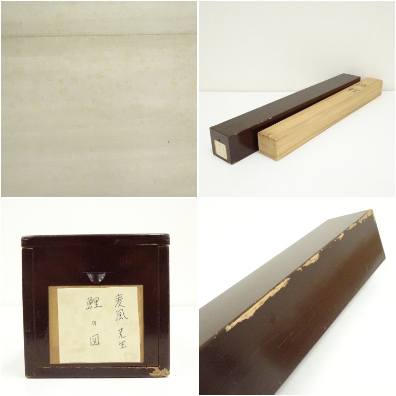 大野麦風筆 游鯉 肉筆絹本掛軸(共箱・二重箱)