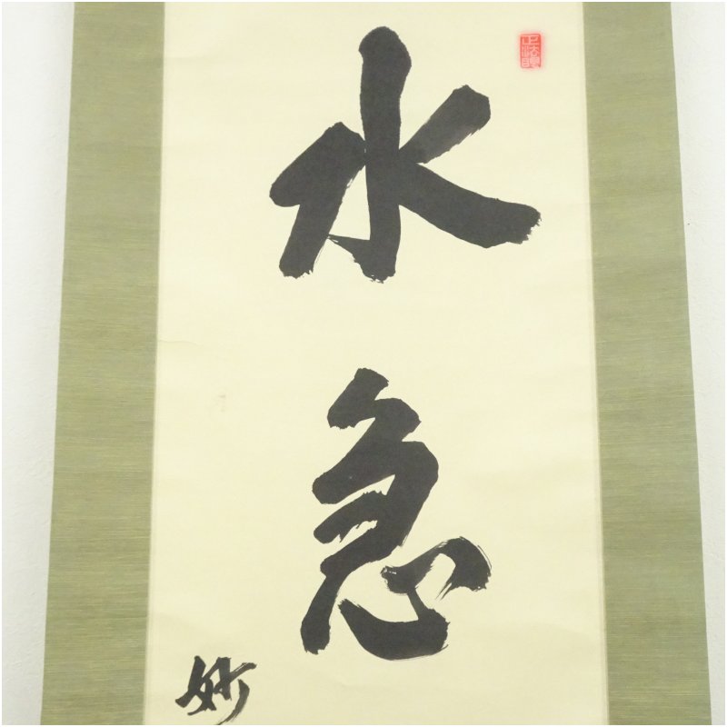 妙心寺 梶浦逸外筆 「水急不流月」一行書 肉筆紙本掛軸(共箱) [01-251113b-039a]