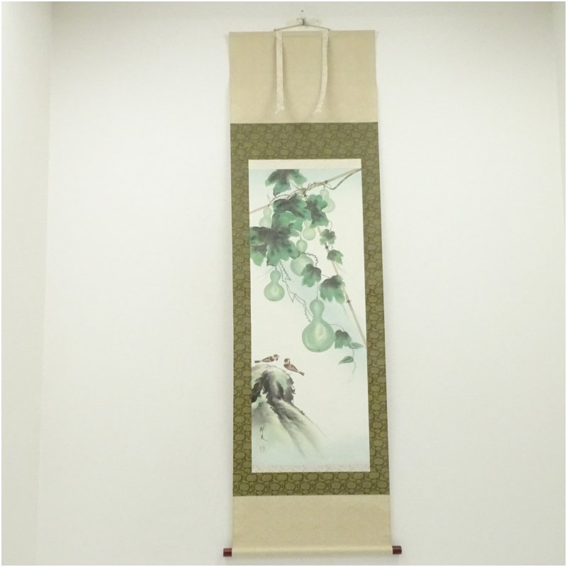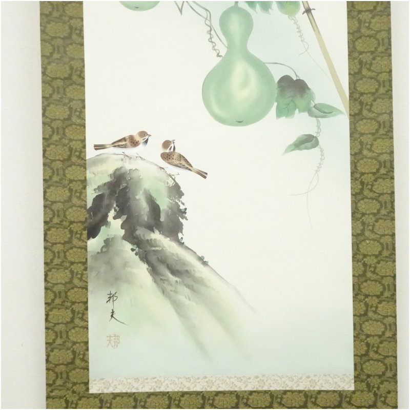 邦夫筆 六瓢図 肉筆絹本掛軸(共箱)
