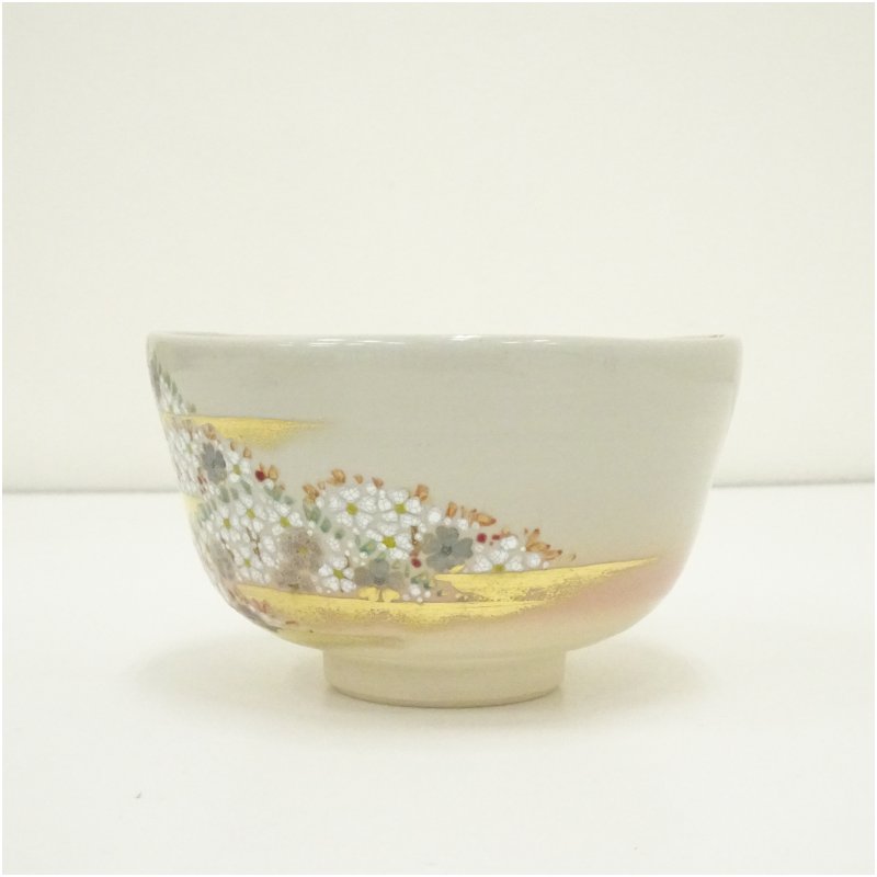 京焼 中村能久造 色絵吉野山之図茶碗(共箱) [12-251113b-066a]