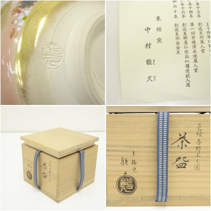 京焼 中村能久造 色絵吉野山之図茶碗(共箱)