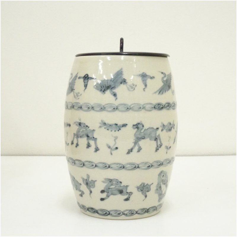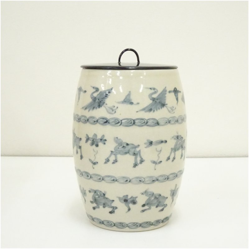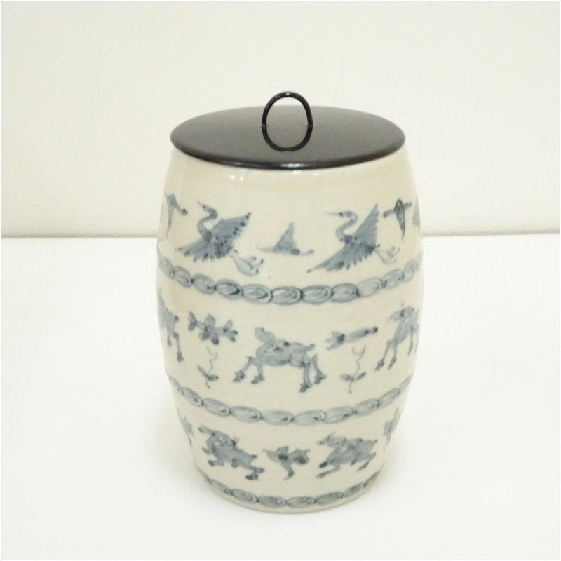 塗師 海田宗恵・加藤唐三郎造 染付吉祥文細水指(共箱) [12-251113b-072a]