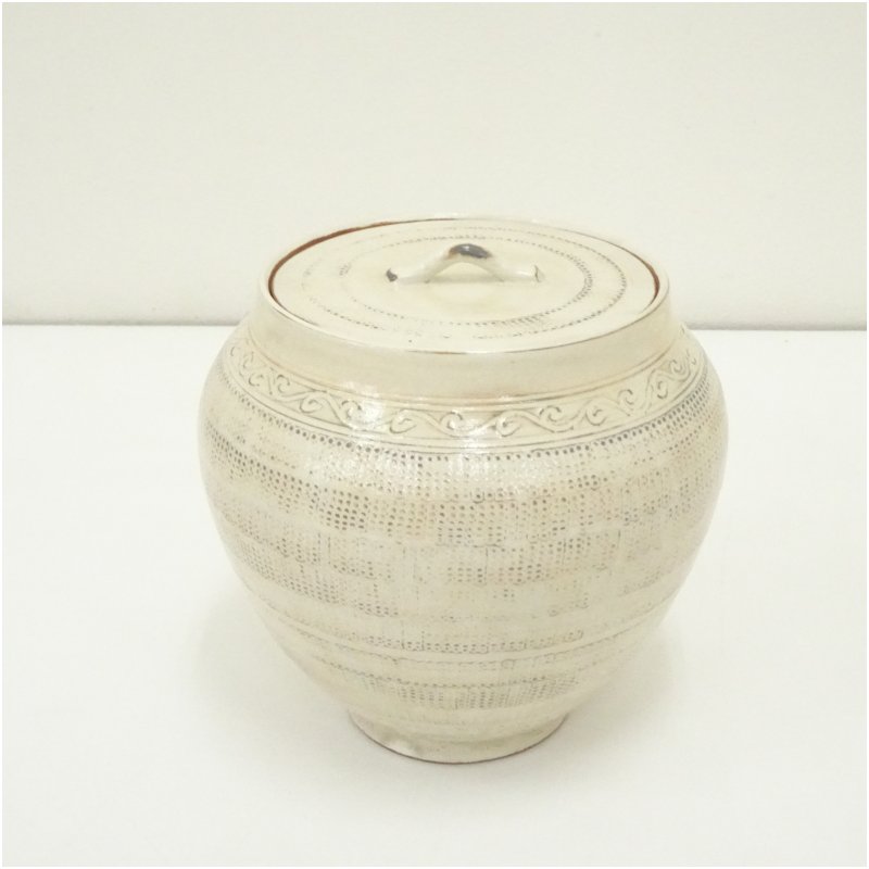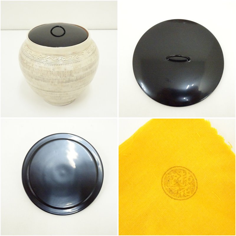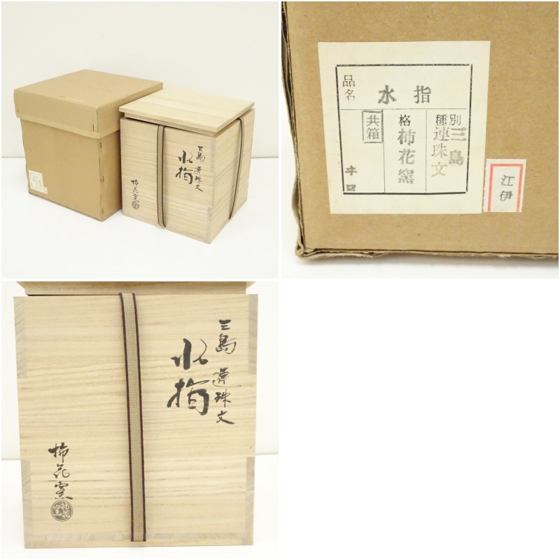 柿花窯造 三島連珠文水指(替蓋付)(共箱)
