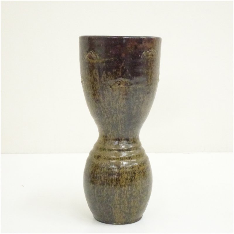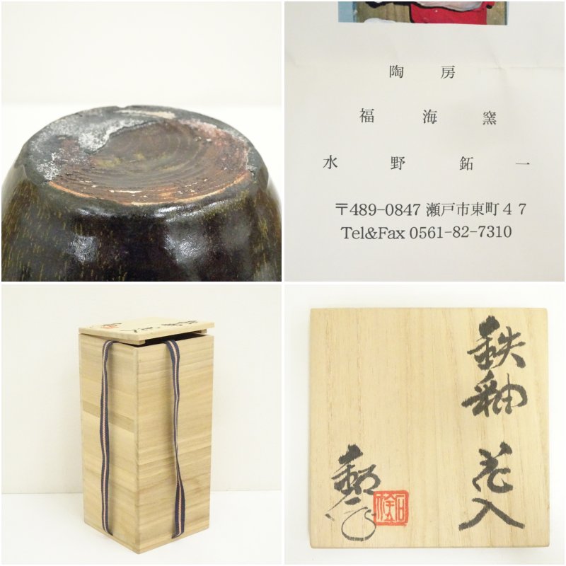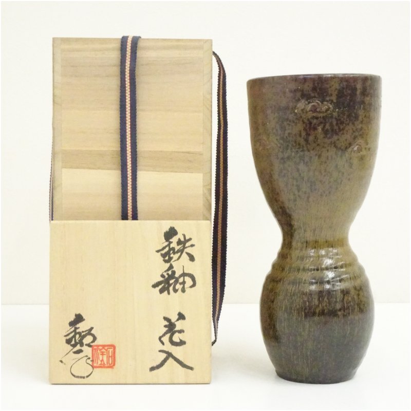 水野鉐一造 鉄釉花入(共箱)