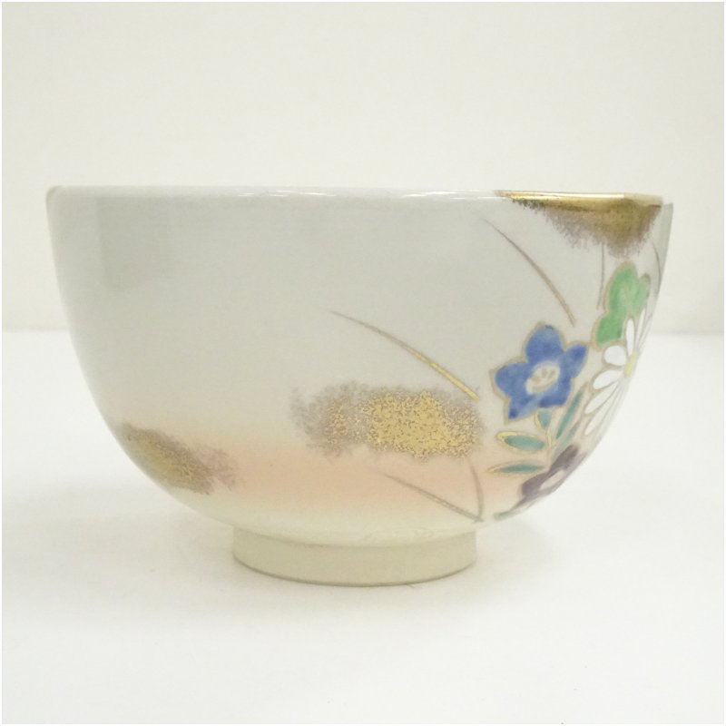 作家物 色絵草花茶碗(箱付) [01-251113d-048a]