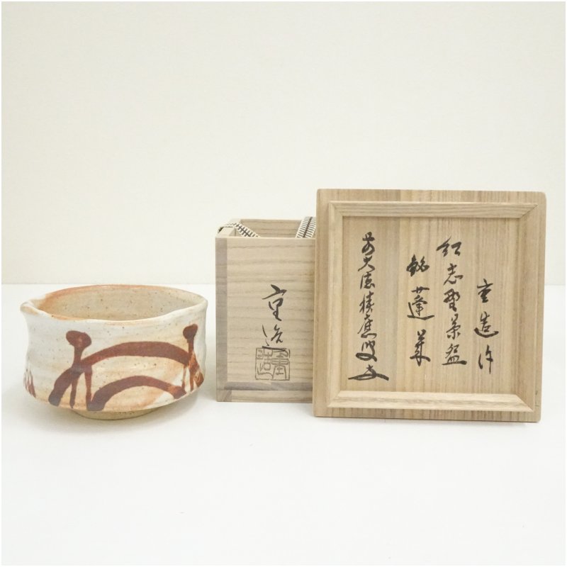 佐藤重造造 紅志野茶碗(銘:蓬莱)(前大徳 福本積應書付)(共箱)