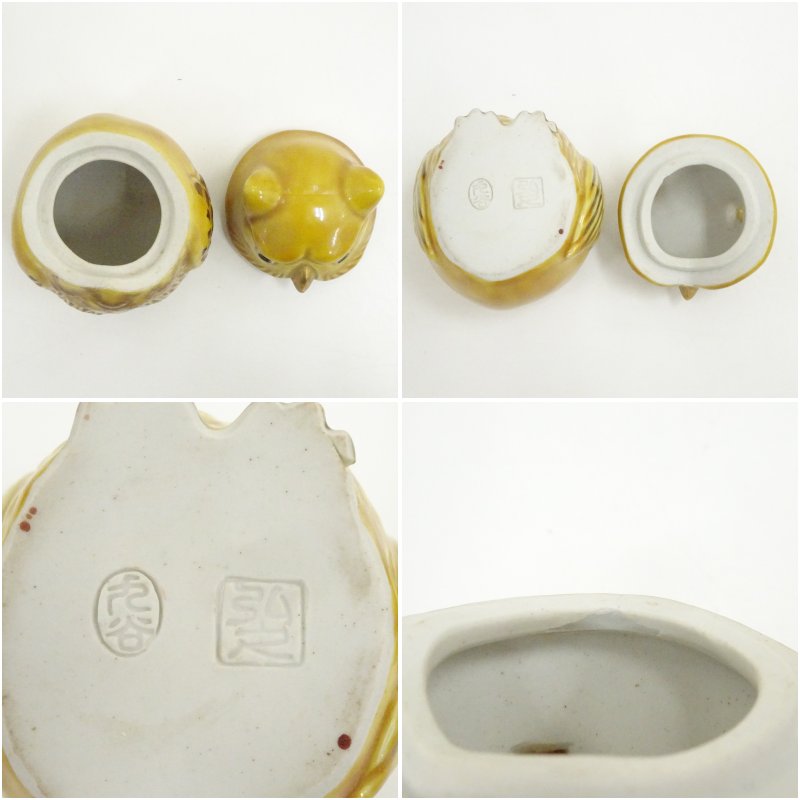 九谷焼 木田弘之造 色釉梟香炉(共箱) [01-251113d-069a]