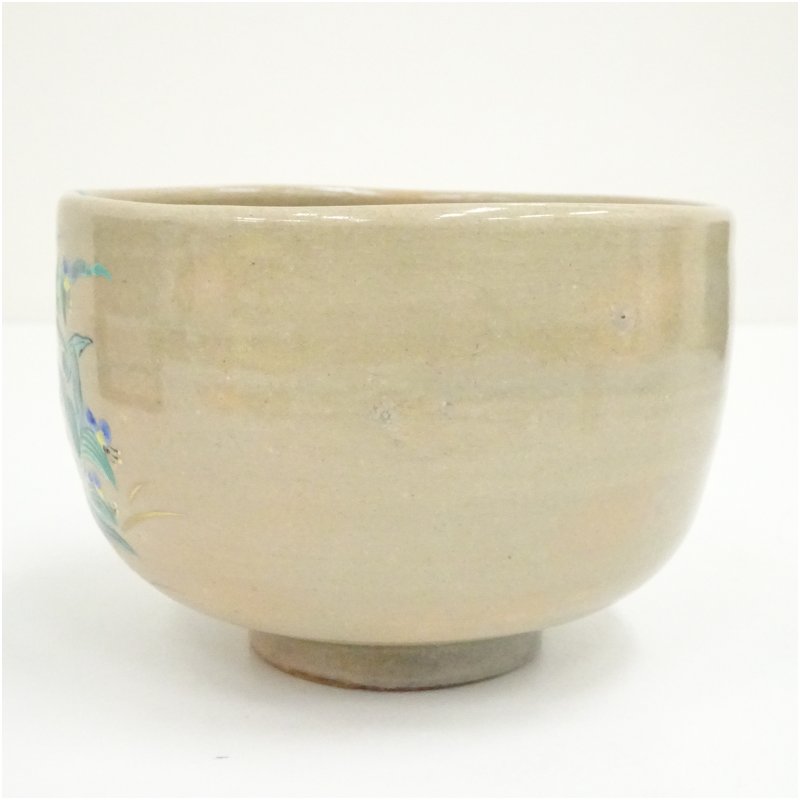 萬古焼 三藤窯 賢豊造 色絵露草茶碗(箱付) [01-251113d-074a]