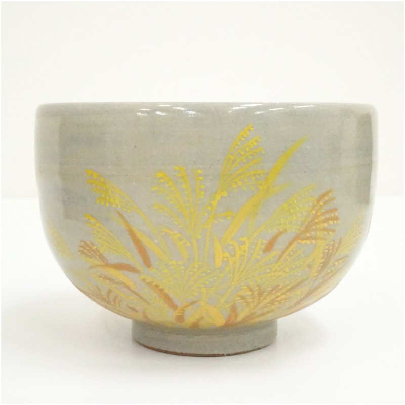 萬古焼 三藤窯 賢豊造 色絵ススキ茶碗(箱付) [01-251113d-075a]