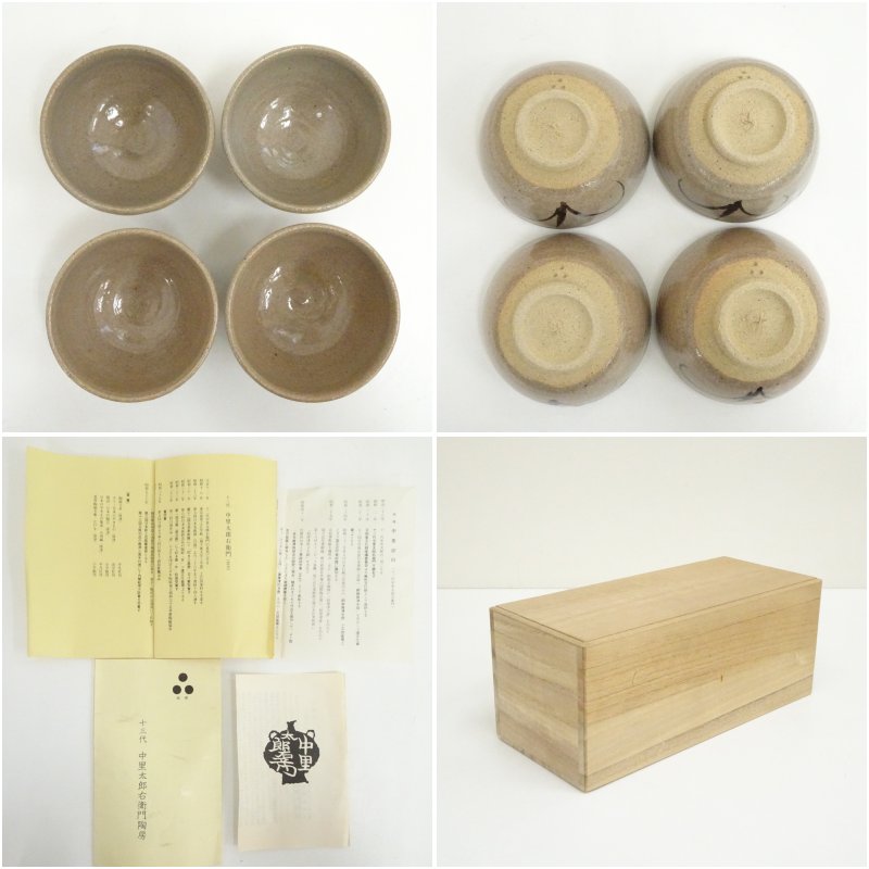 唐津焼 十三代 中里太郎右衛門窯造 絵唐津湯呑5客(共箱) [01-251117d-003a]