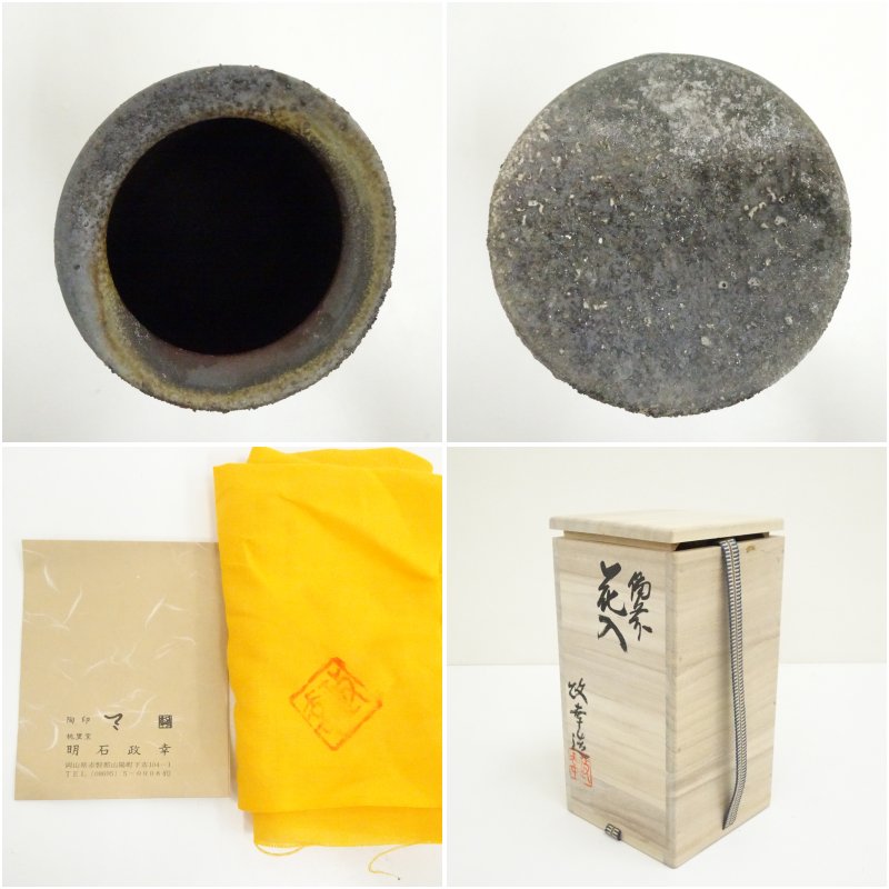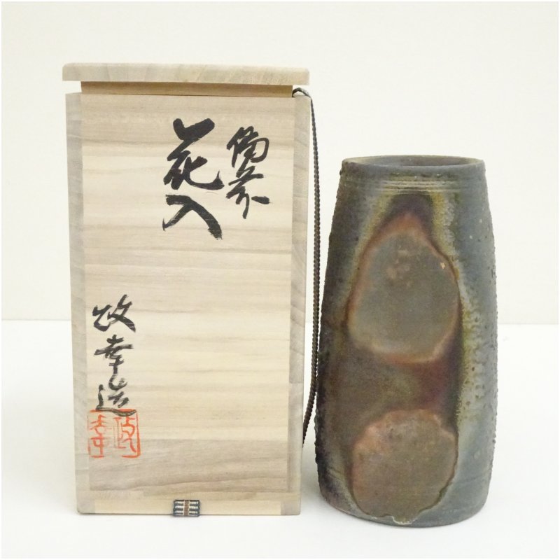 備前焼 明石政幸造 花入(共箱)