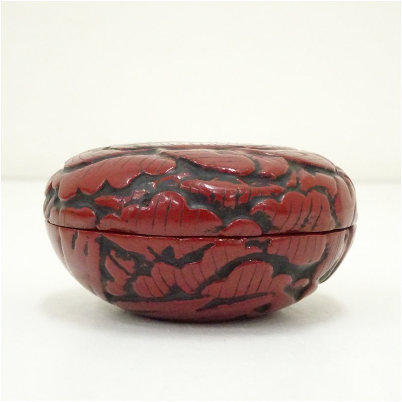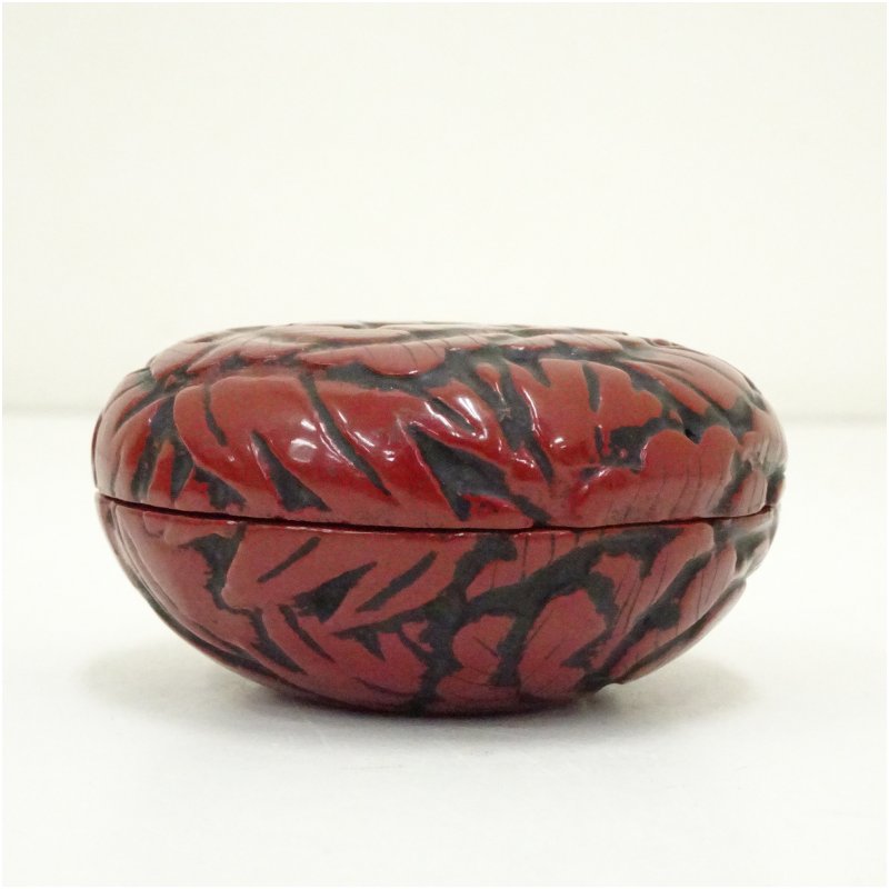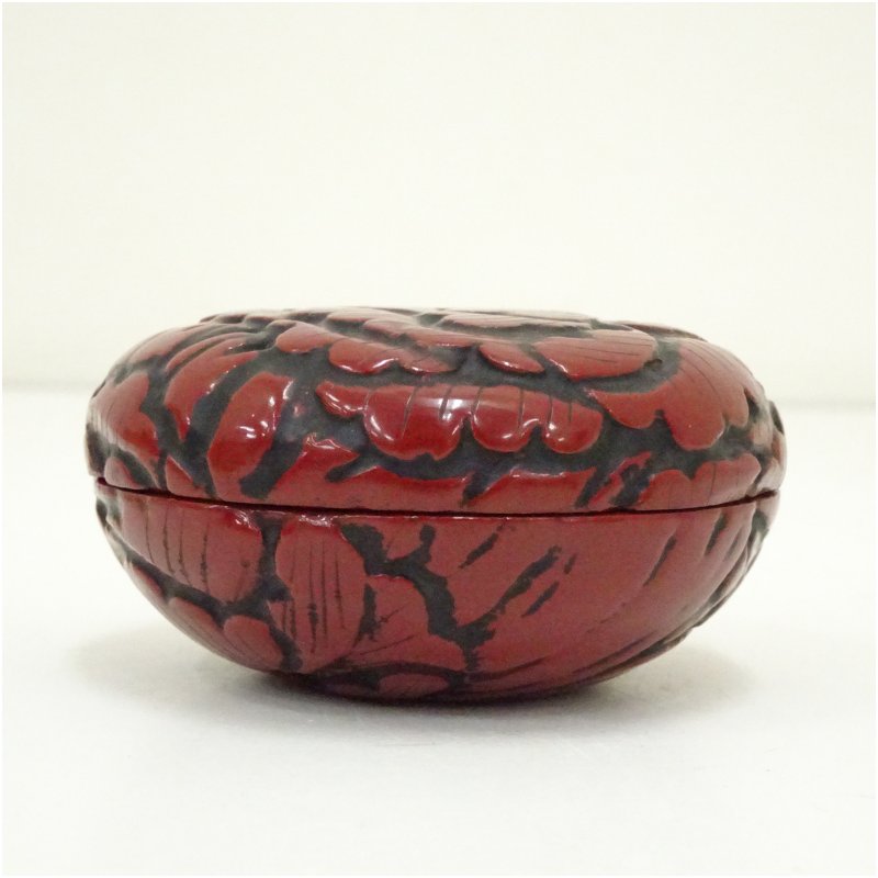 南忠造 堆朱牡丹彫香合(共箱) [01-251117d-060a]