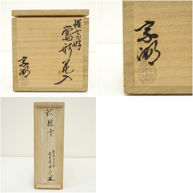 長尾宗湖造 惺斎好鴬形花入(銘:聴雪)(大徳寺派 廣徳寺 福富海雲書付)(共箱)