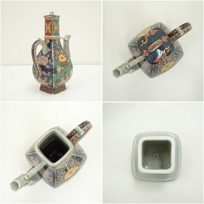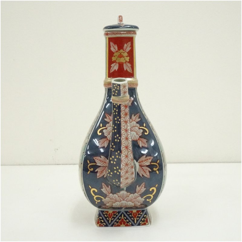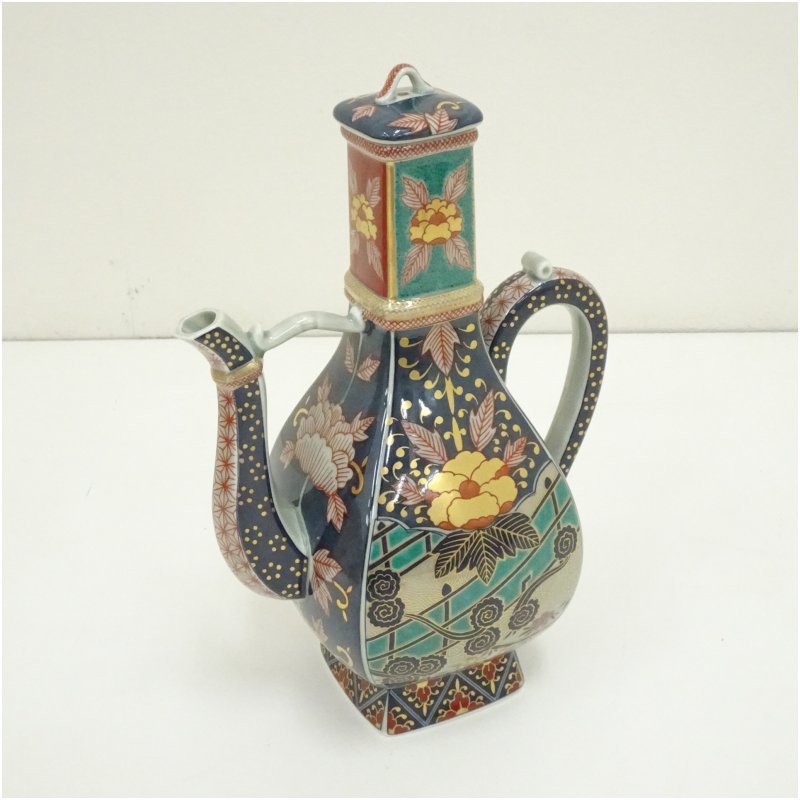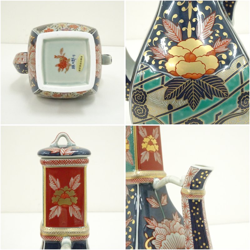 有田焼 林九郎造 染錦牡丹流水文手付面取水注(共箱)