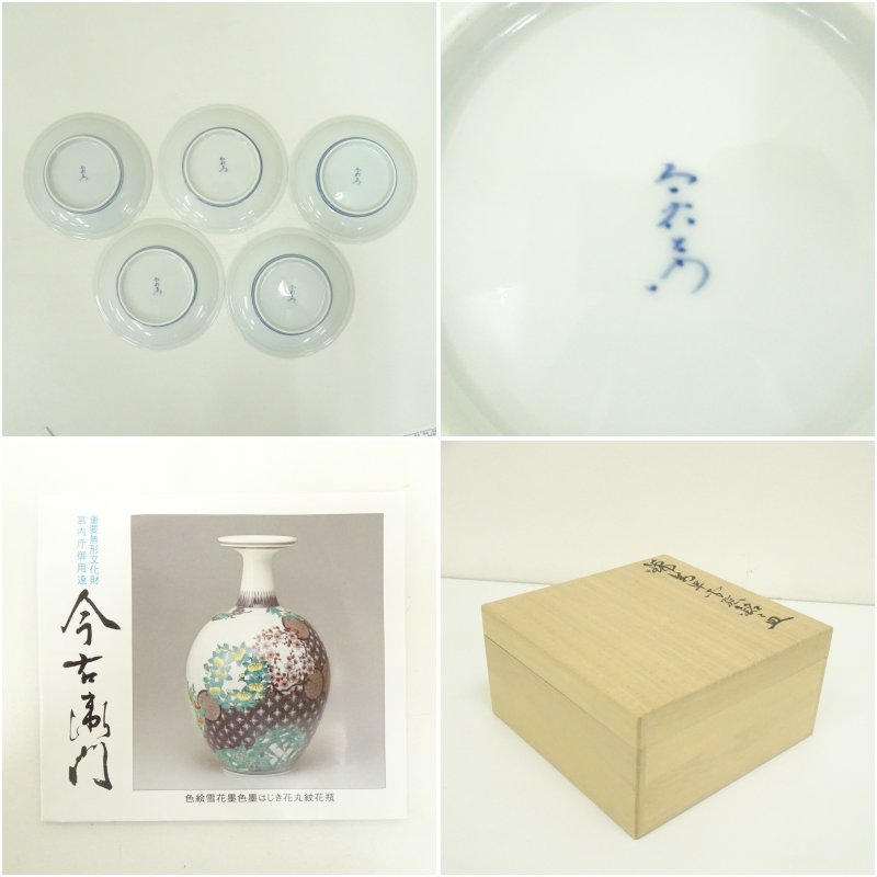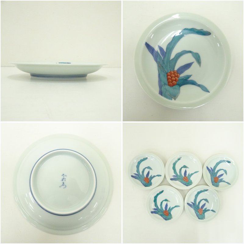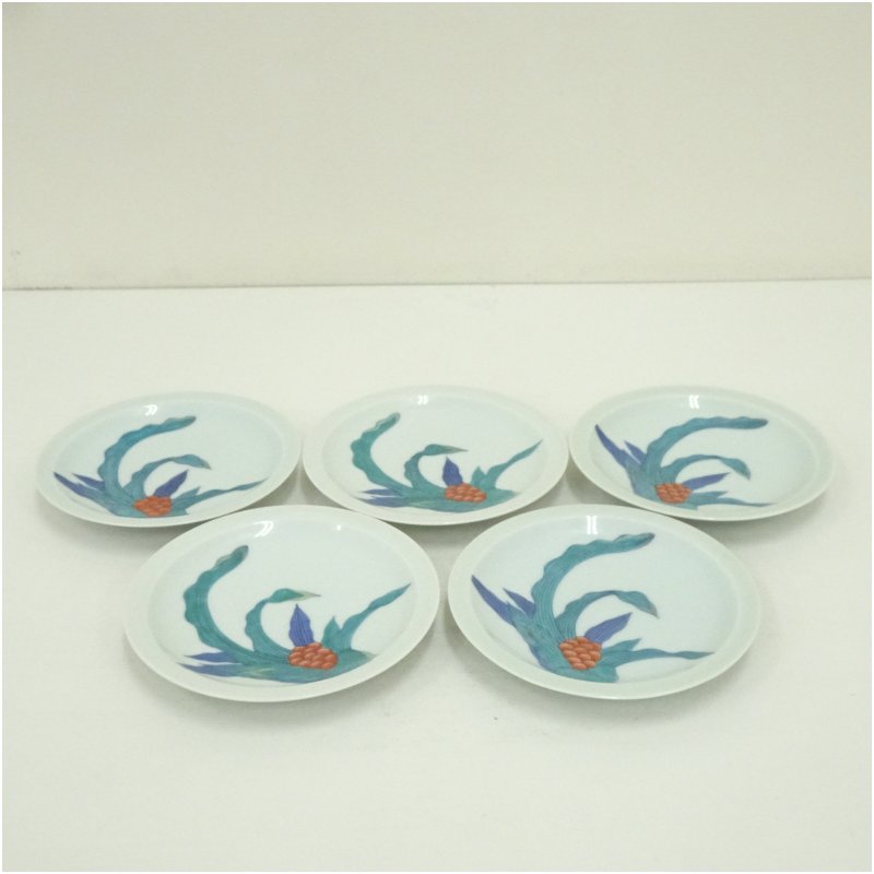 有田焼 今泉今右衛門造 錦万年青絵銘々皿5客(共箱)