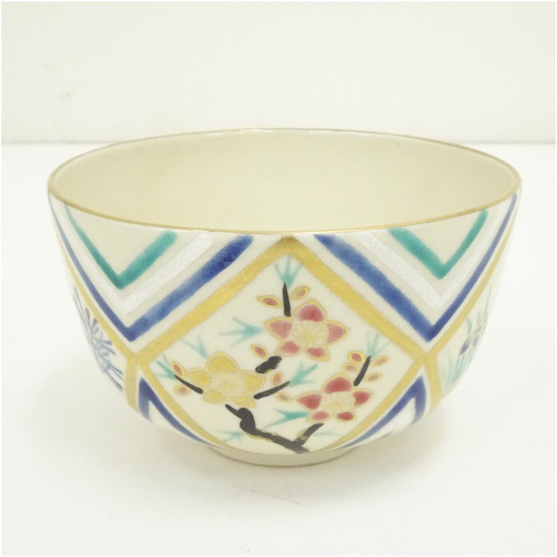 京焼 川添寿楽造 色絵松竹梅茶碗 [01-251118b-032a]