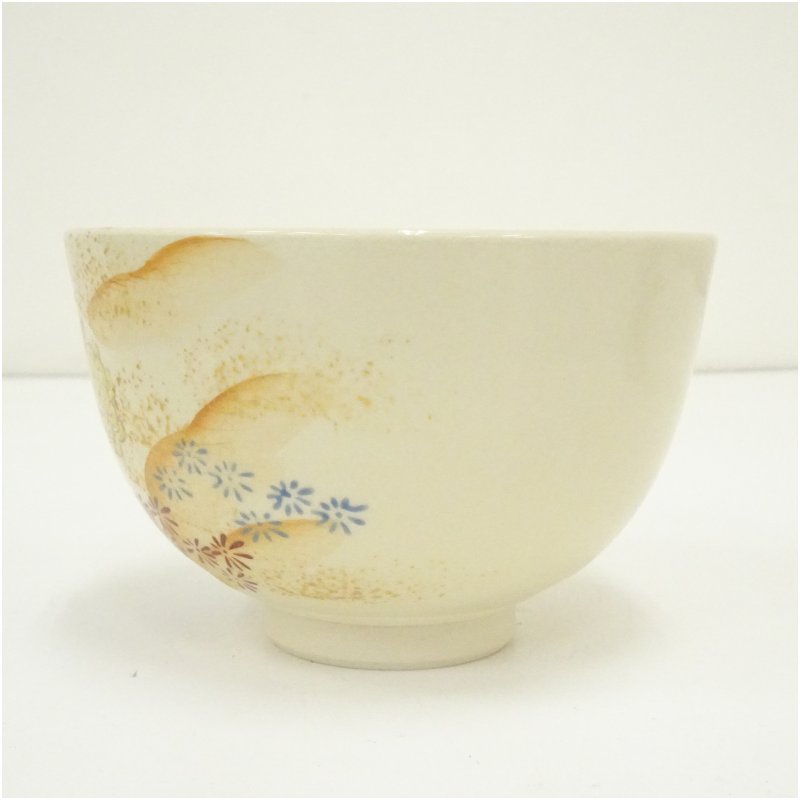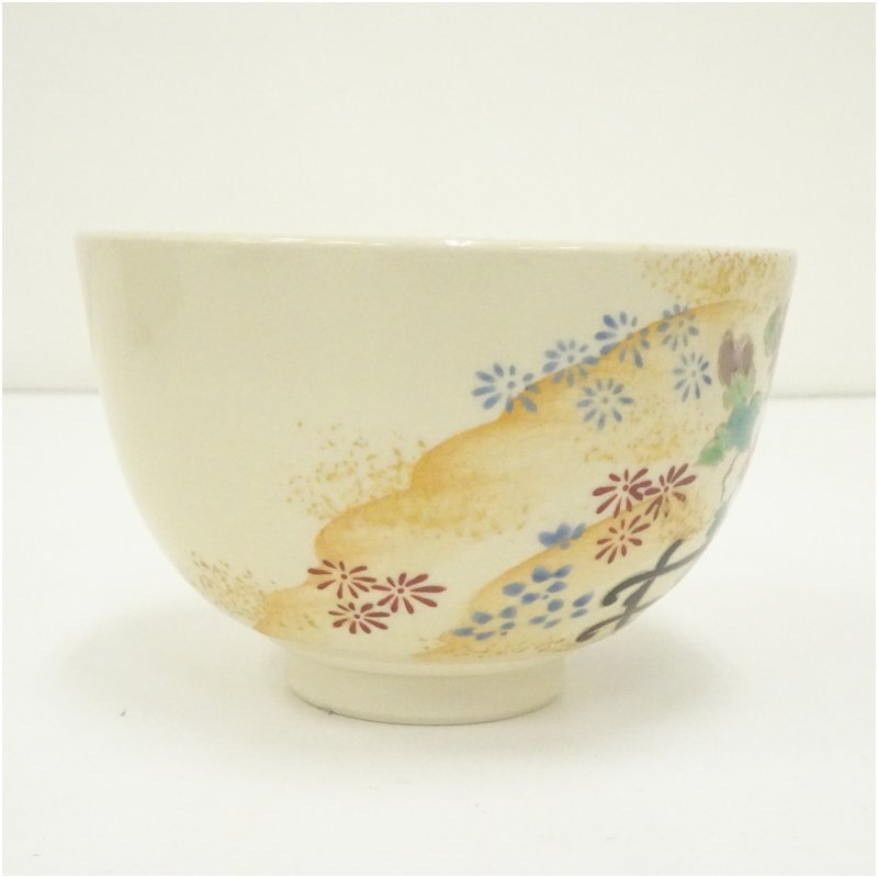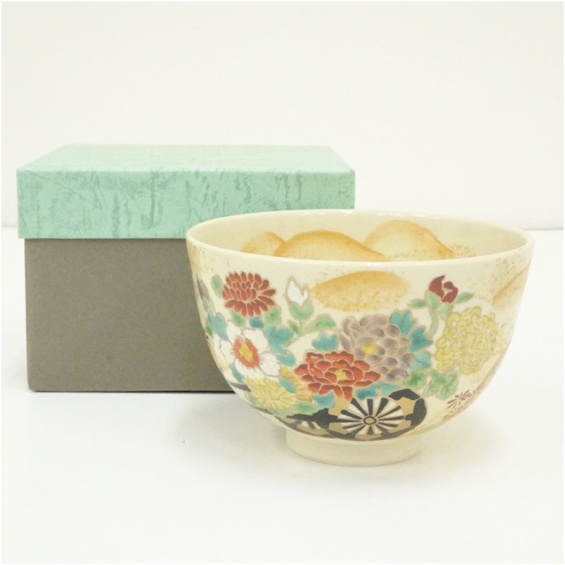 作家物 色絵花車茶碗(箱付) [01-251118b-044a]
