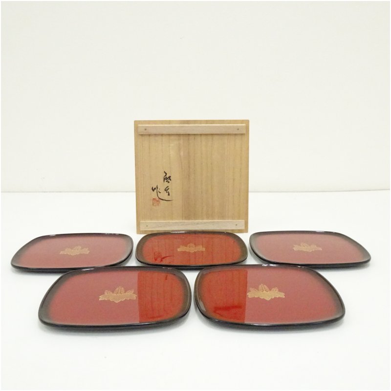 輪島塗 小西啓介造 沈金桐文銘々皿5客(共箱) [01-251118b-052a]