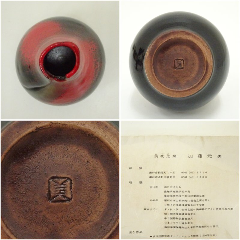 美夜之窯 加藤元男造 焔花瓶(共箱)