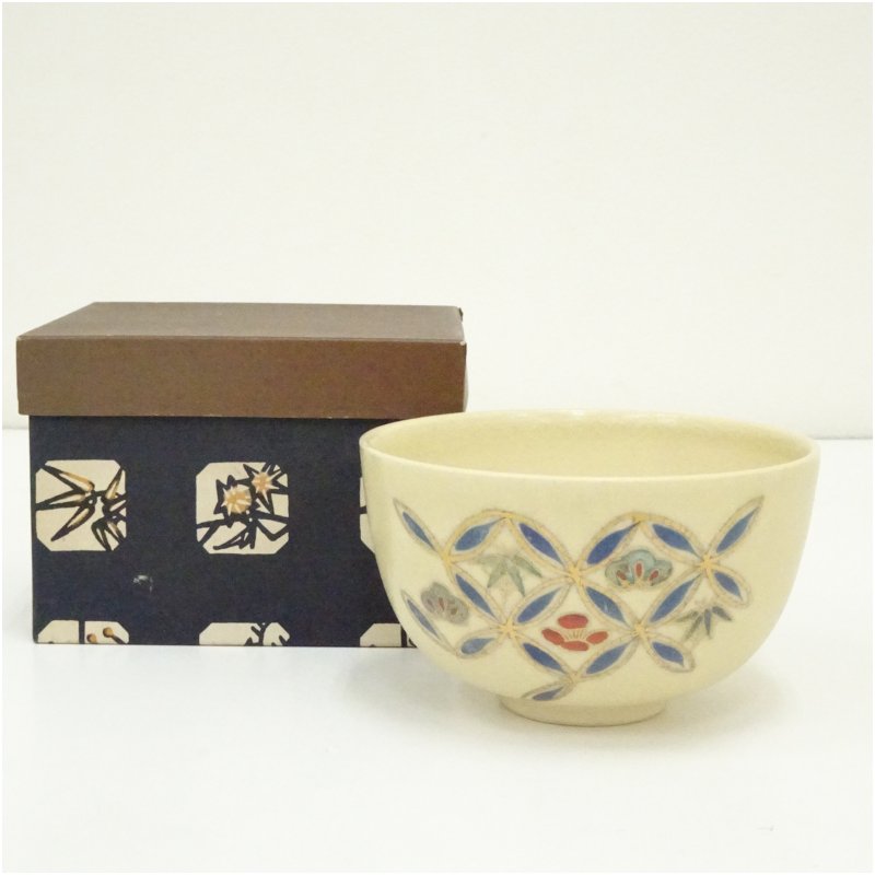 京焼 竜仙造 七宝繋茶碗(箱付)