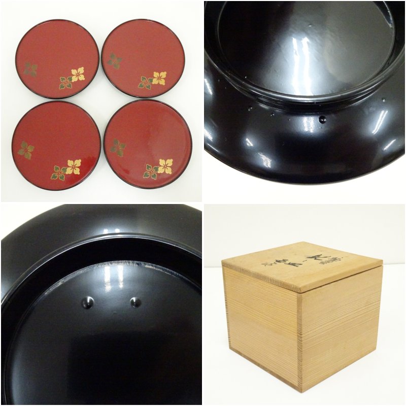 輪島塗 朱花図銘々皿5客(共箱) [01-251118b-068a]