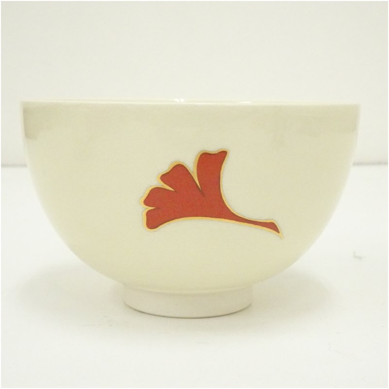 京焼 加藤昌山造 色絵銀杏文茶碗・振出・巾筒 3点セット(箱付) [01-251118b-080a]