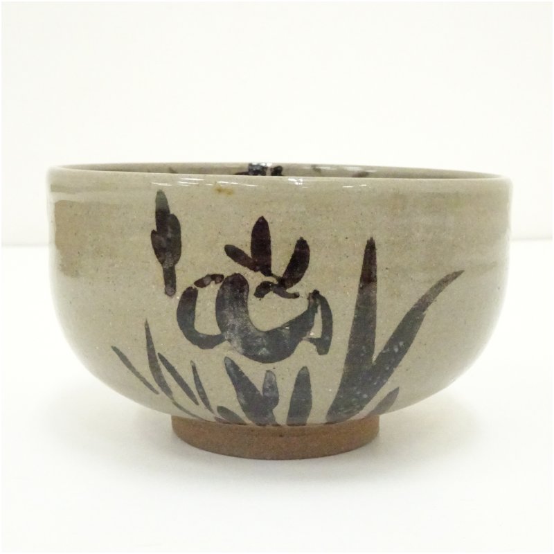 陶山造 鉄絵菖蒲文茶碗(箱付)