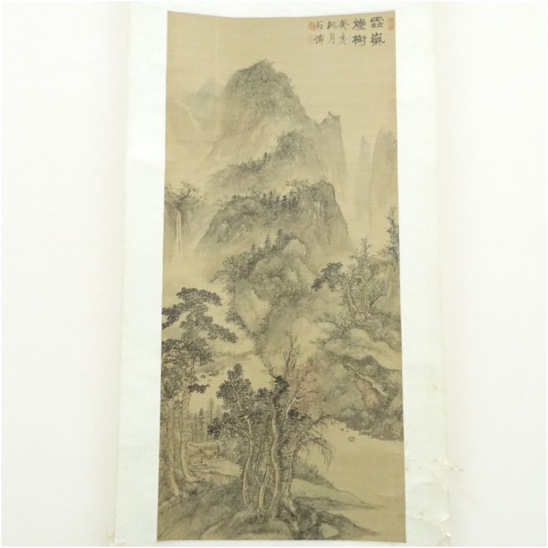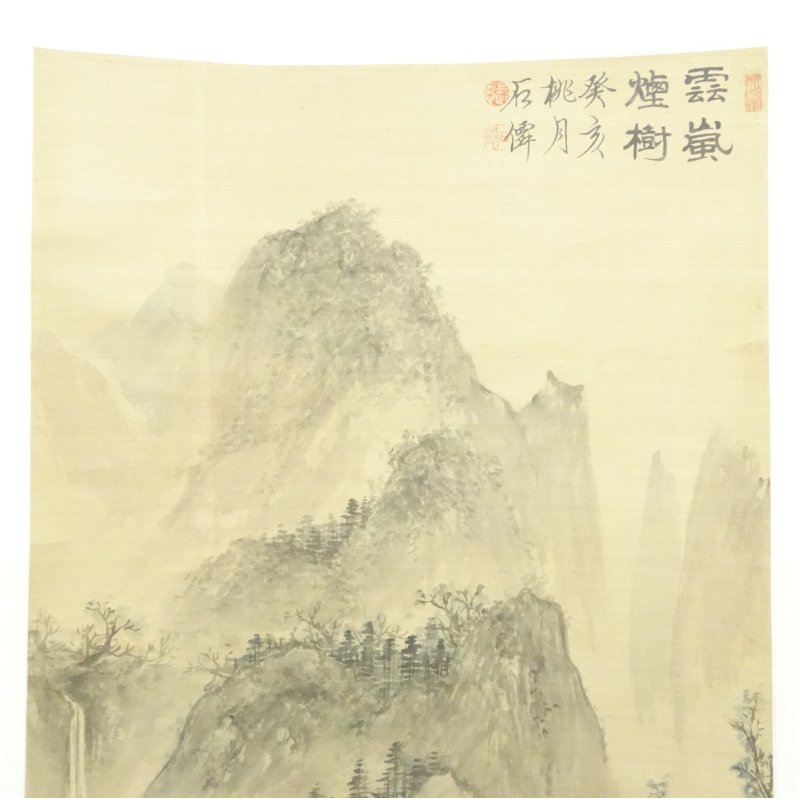 小松筆 水墨山水 肉筆絹本掛軸 [01-251118b-107a]