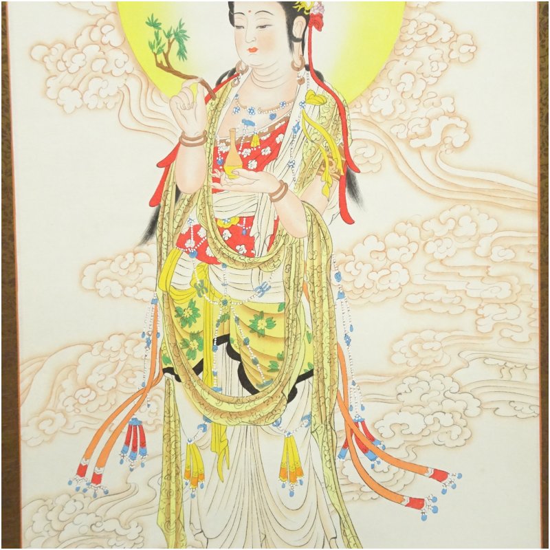 中国 雲上観音図 肉筆紙本掛軸 [01-251118b-108a]