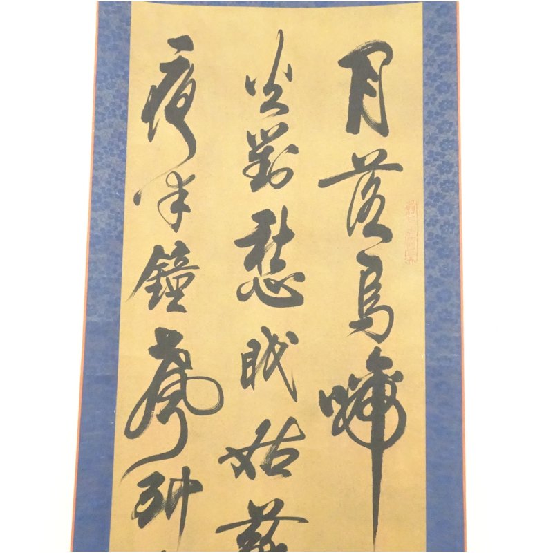 中国 行雲筆 楓橋夜泊 肉筆紙本掛軸