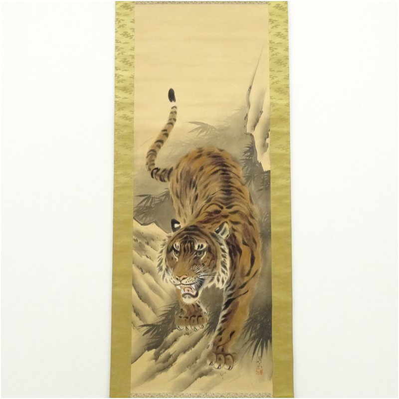 美山筆 猛虎図 肉筆絹本掛軸 [01-251118b-111a]