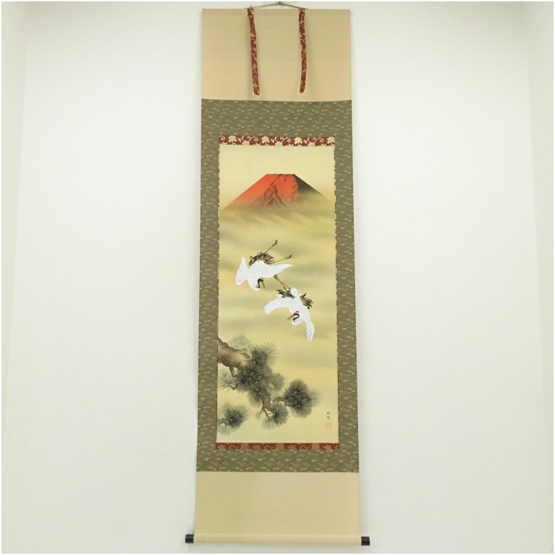 観峰筆 赤富士 肉筆絹本掛軸 [01-251118b-112a]