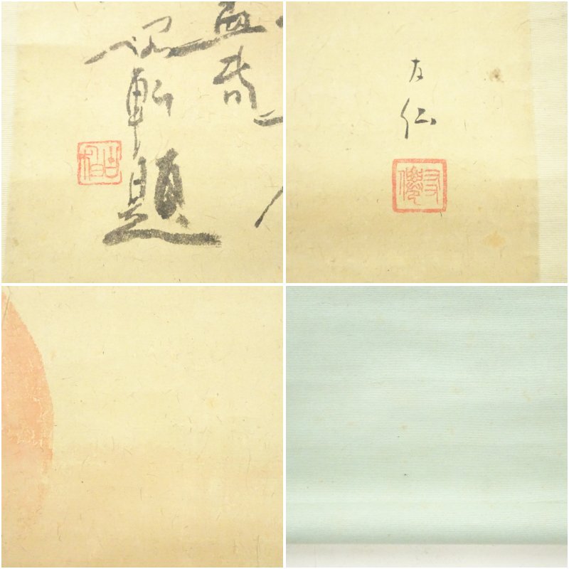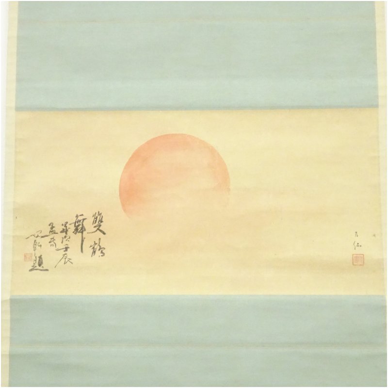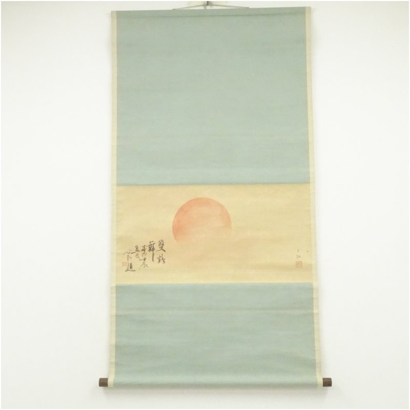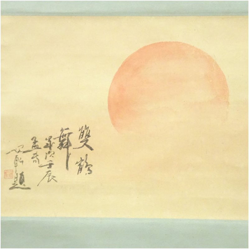 岡島友仙筆 旭日 坂田脩軒賛 肉筆紙本掛軸(共箱) [14-251118c-002b]