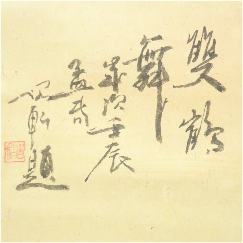 表具:表面全体に巻き皺があり、薄いシミがあります。裏面上部にシミと剥がれがあります。