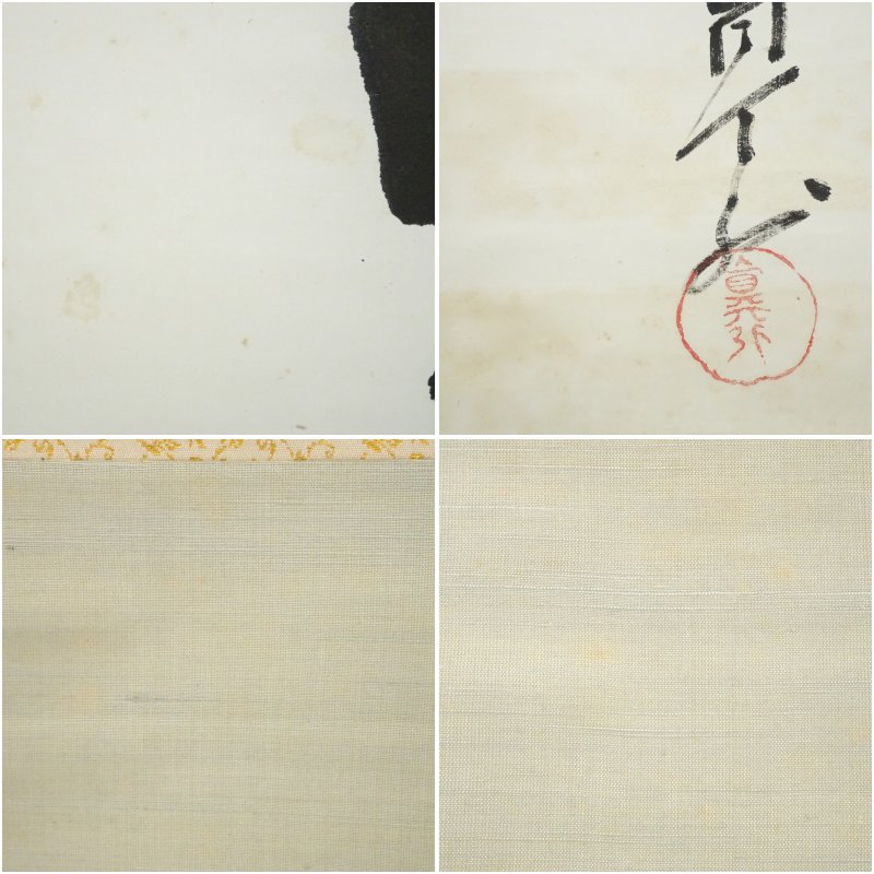 本紙と表具両面に全体的に薄いシミがあります。本紙に折れが1ヶ所あります。
