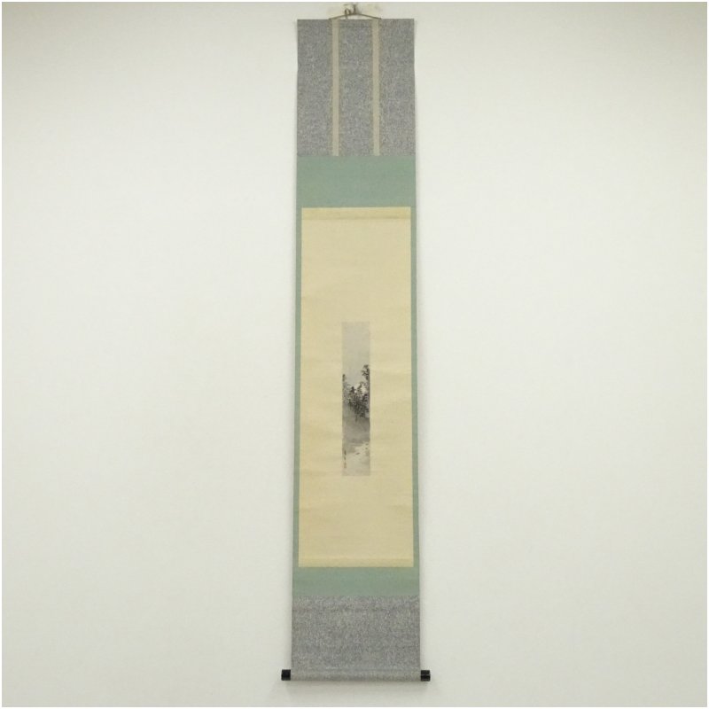 今尾景年筆 月下山水図 肉筆紙本掛軸(保護箱)