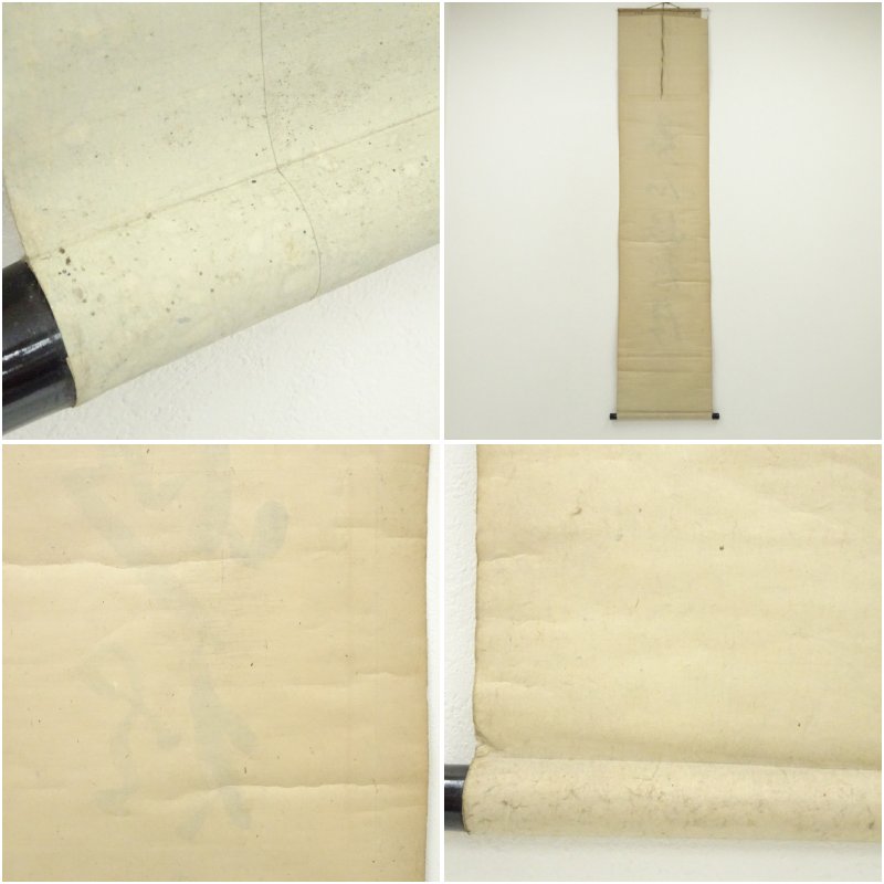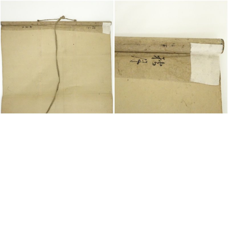 表具:表面に折れ、虫食い、補修等があります。軸先両方に漆剥げがあります。