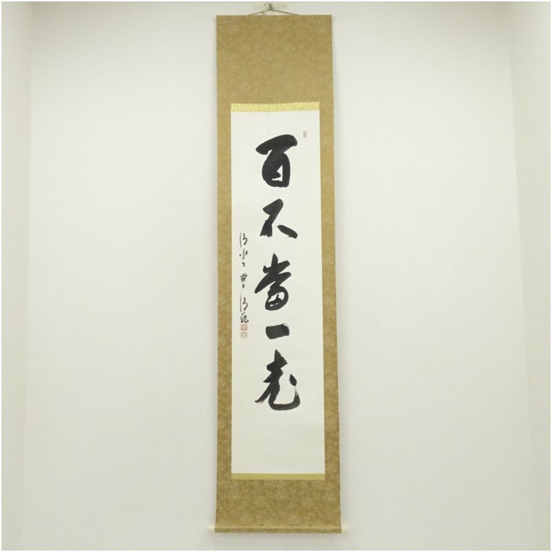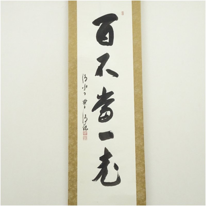 清水寺 森清範筆 「百不当一老」一行書 肉筆紙本掛軸(共箱) [14-251118c-015a]