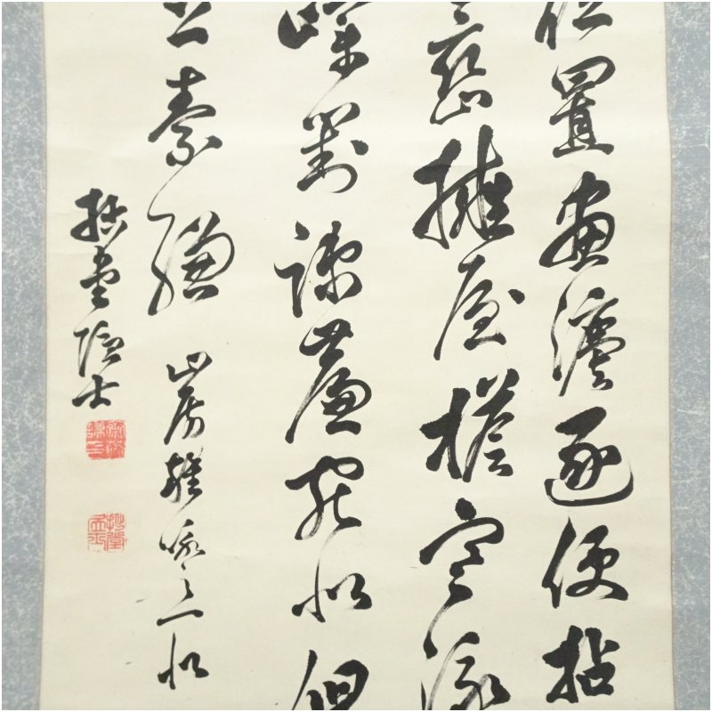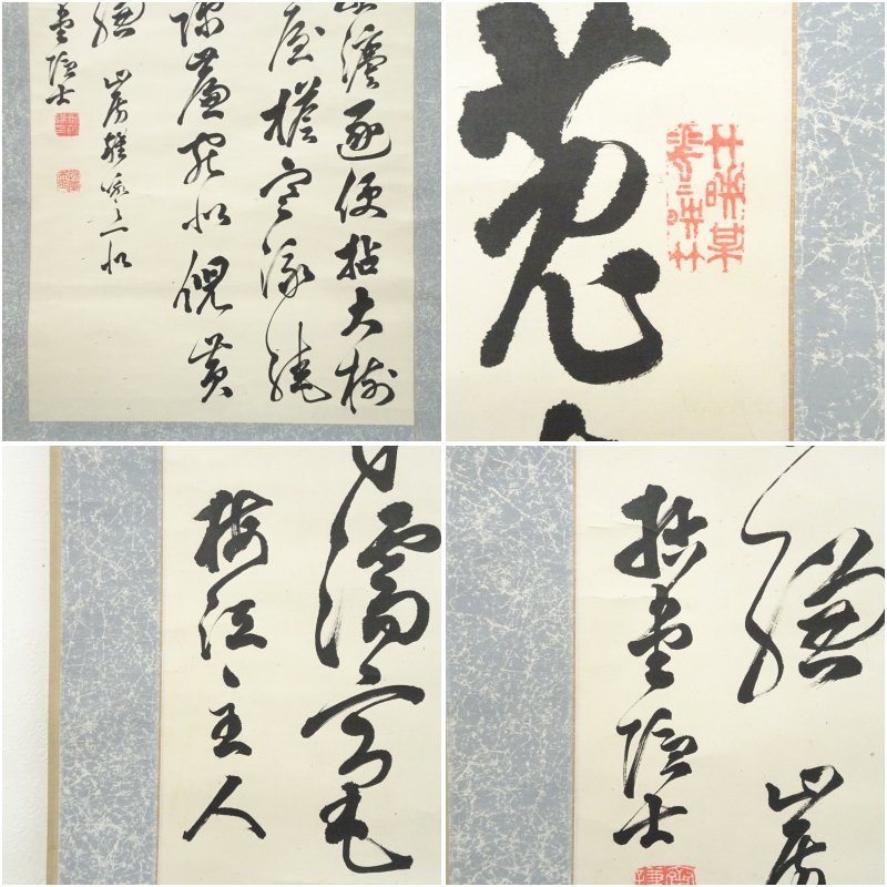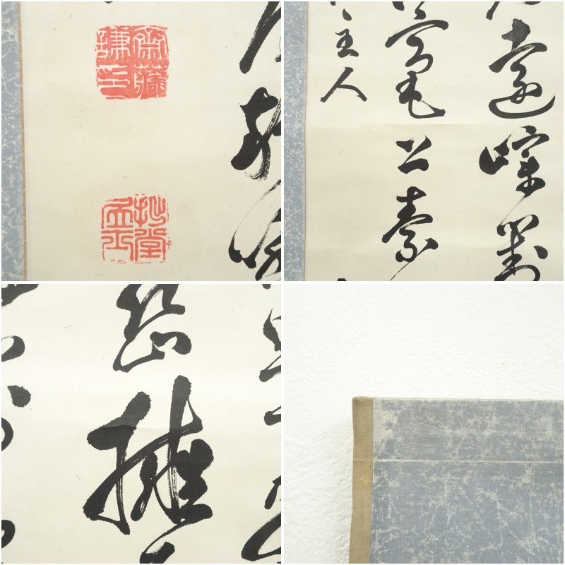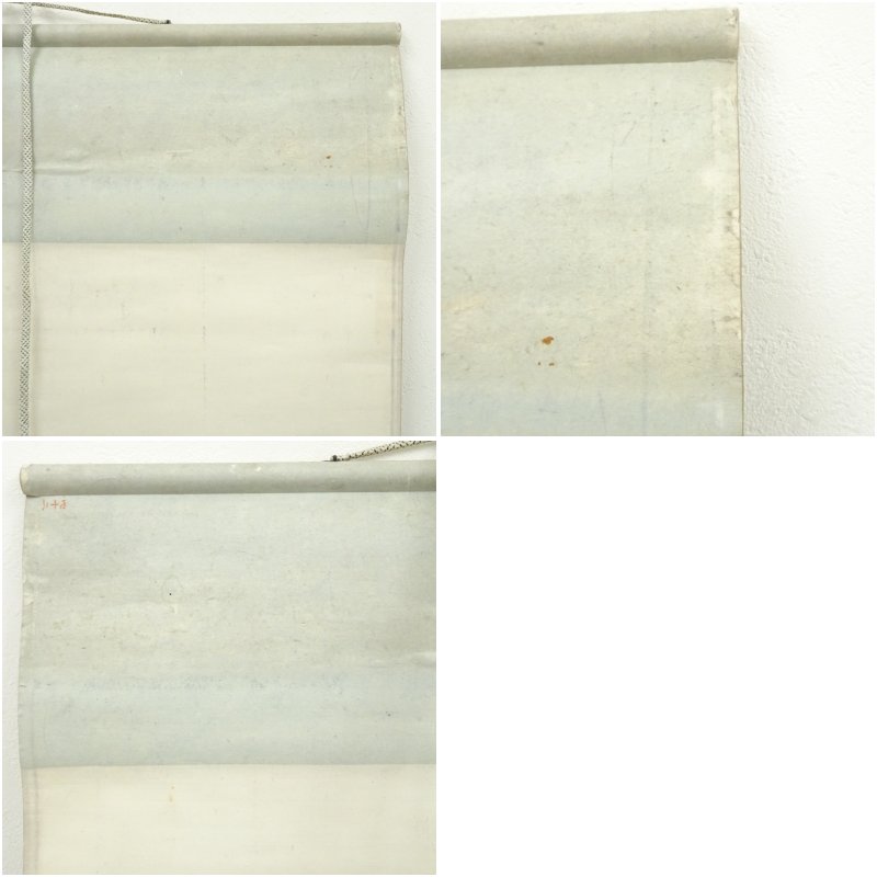 表具:表面上部に擦れ、剥がれ、虫食い等の劣化があります。表面下部に折れが1本あります。裏面上部に経年による汚れや劣化があり、下部に薄い汚れが若干あります。