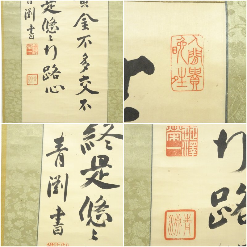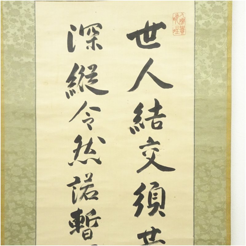 渋沢栄一(青淵)筆 張渭詩「世人結交…」 肉筆絖本掛軸 [14-251118c-029a]