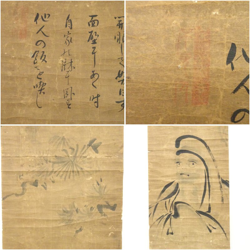 江戸中期 曹洞宗 指月慧印賛 達磨図 肉筆紙本掛軸(保護箱) [14-251118c-039b]