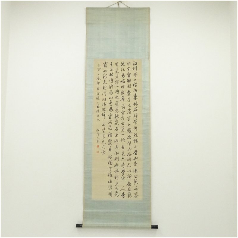 1842年 江戸後期 貫名菘翁(海屋)筆 袁宏道入東林寺記 肉筆絹本掛軸(保護箱)
