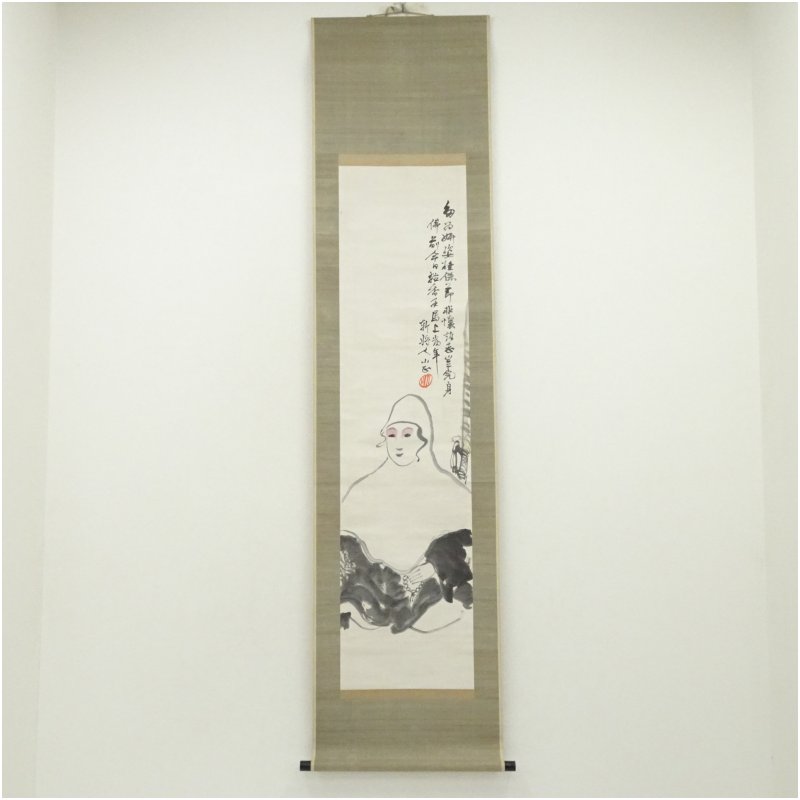 小山正太郎筆 人物画 描印 肉筆紙本掛軸(保護箱) [14-251118c-044b]