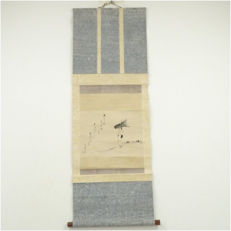 高畠式部筆 大原女画賛 肉筆紙本掛軸(保護箱) [14-251118c-054b]