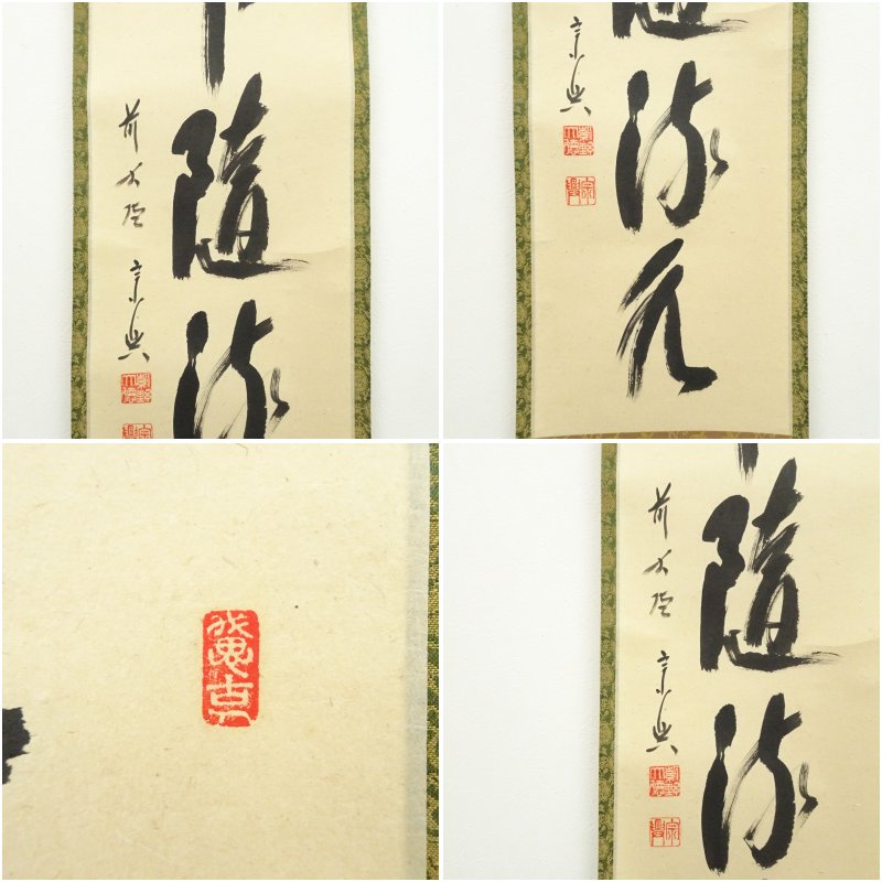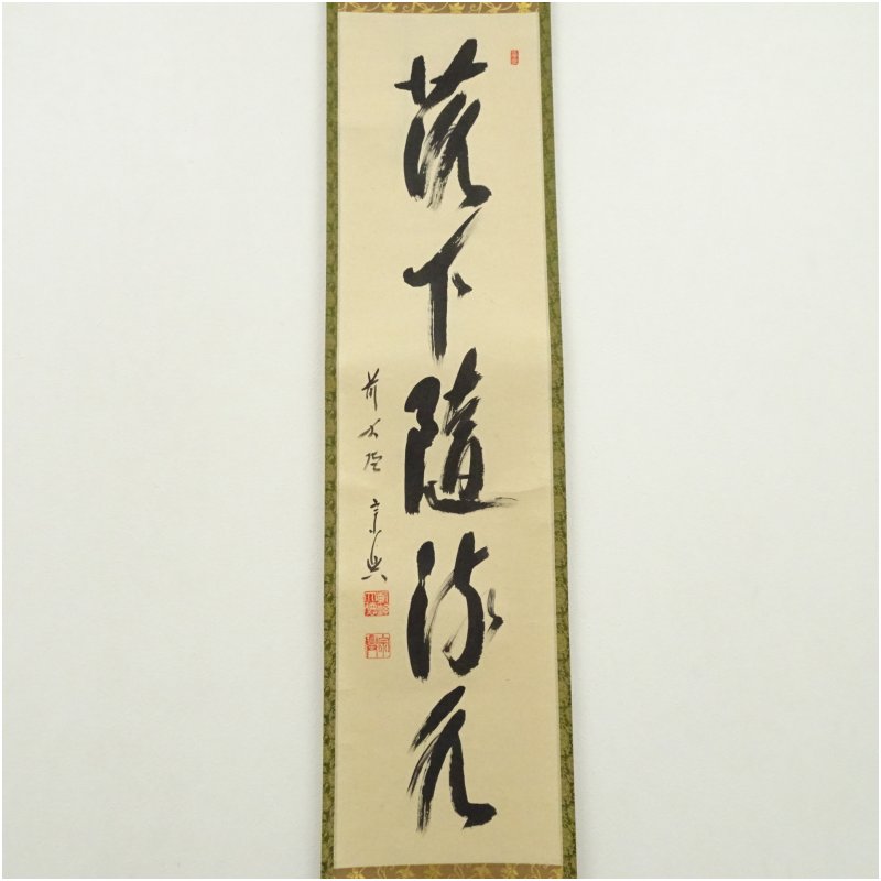前大徳 西垣宗興筆 「落下随流水」一行書 肉筆紙本掛軸(共箱)