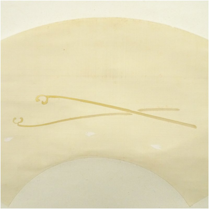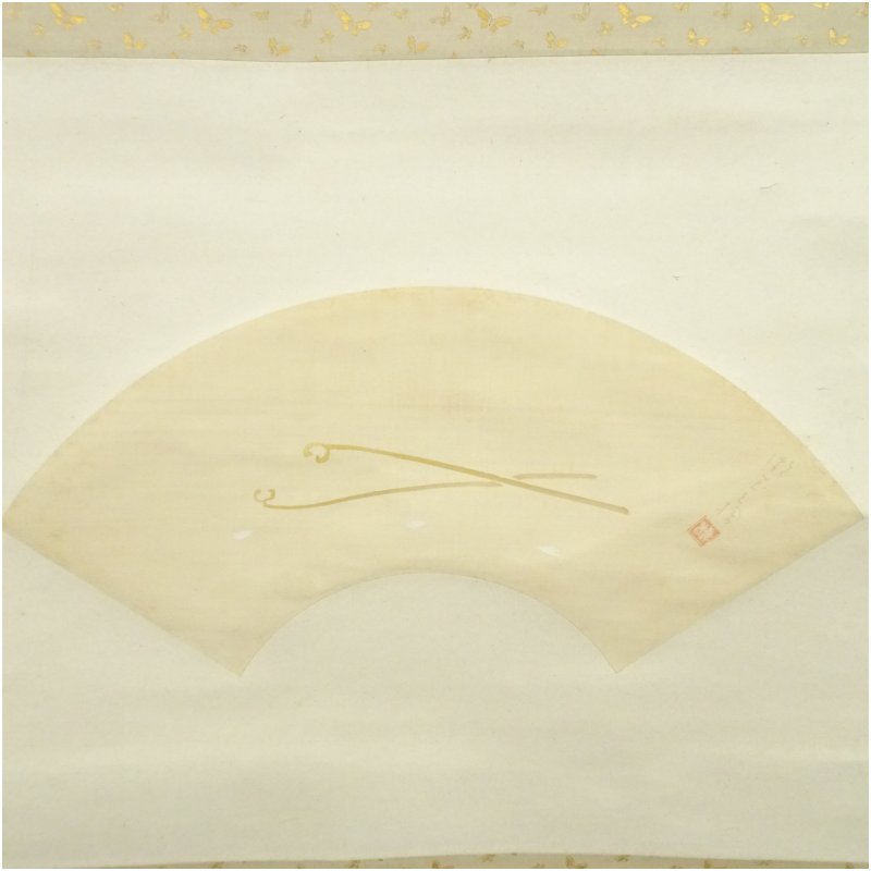 登内微笑筆 桜 扇面 肉筆絹本掛軸(保護箱) [14-251118c-058a]