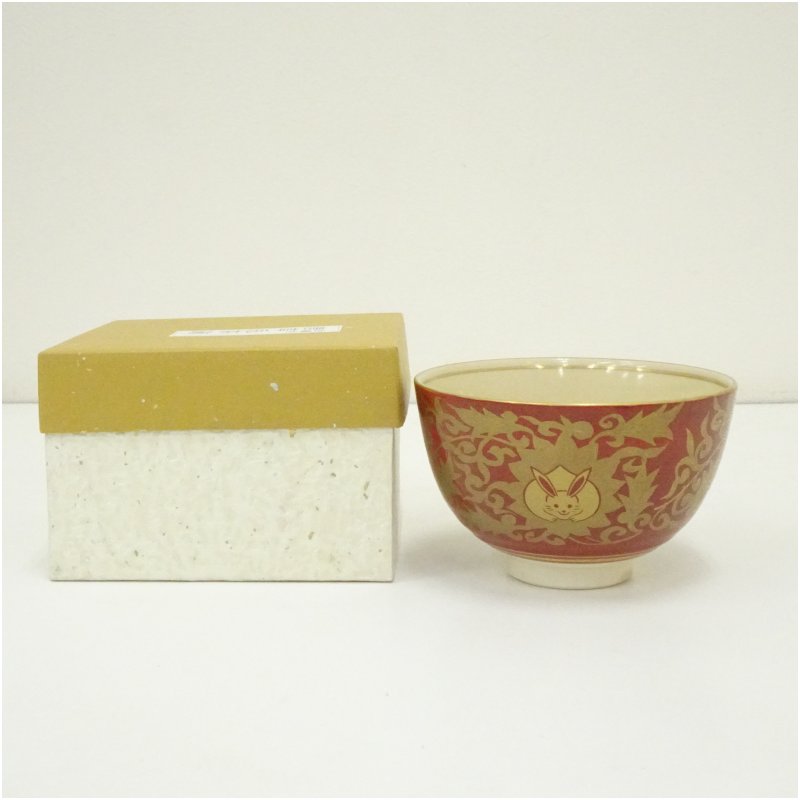 美濃焼 藤山窯 加藤藤山造 金襴手唐草兎茶碗(箱付)