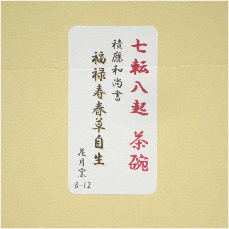 花月窯造 前大徳 福本積應字入 七転八起茶碗(箱付)