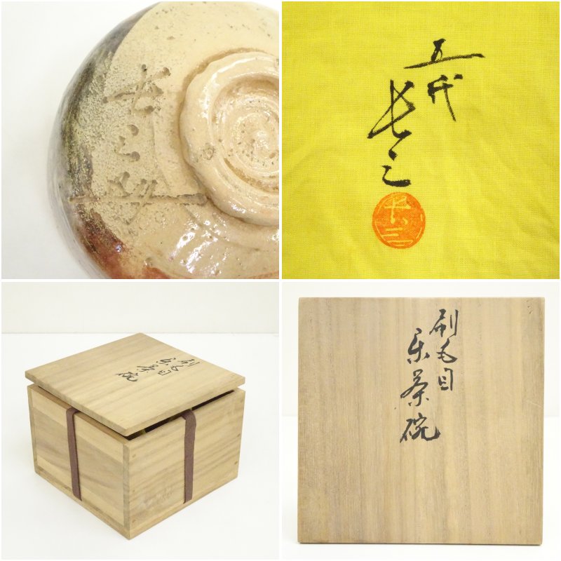 五代 伊奈長三造 刷毛目楽茶碗(共箱)